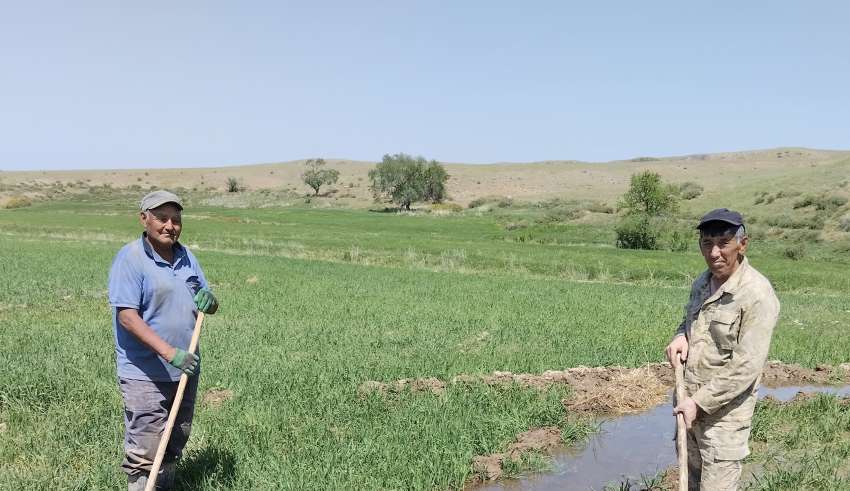 Вооружившись кетменем, Еркин Аулбекович спешит на поле, площадью семь гектаров, чтобы напоить пшеницу и люцерну, дабы зеленые ростки вытянулись, окрепли и в нужный час порадовали хорошим урожаем.
