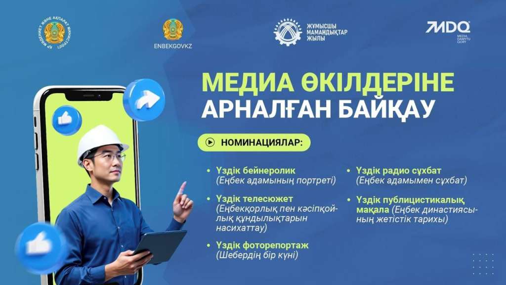 ҚР Мәдениет және ақпарат министрлігі мен ҚР Еңбек және халықты әлеуметтік қорғау министрлігінің қолдауымен «Медиа дамыту қоры» корпоративтік қоры 2025 жылғы 1 тамыздан бастап жұмысшы мамандықтар жылына арналған байқауға өтінімдер қабылдауды бастады.