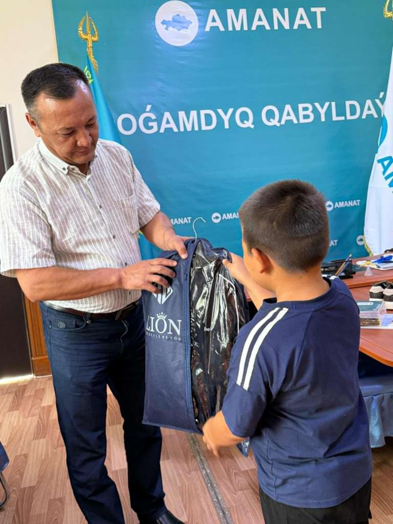 — «Бүгінгі көмектің басты мақсаты – балалардың білім алуына жағдай жасап, олардың әлеуметтік теңдігін қамтамасыз ету. Білімді ұрпақ – болашақтың кепілі. Сондықтан біз әрқашан осындай игі бастамаларға қолдау білдіріп келеміз», – деді депутат Илахунов Абдуманап Аблахаевич.