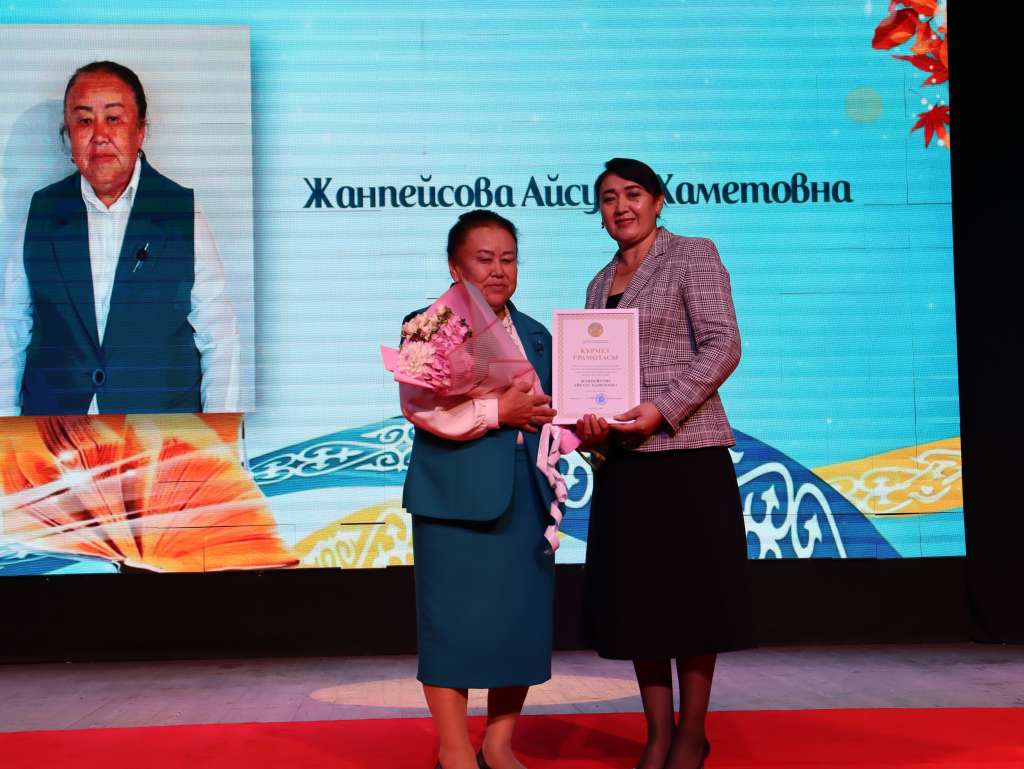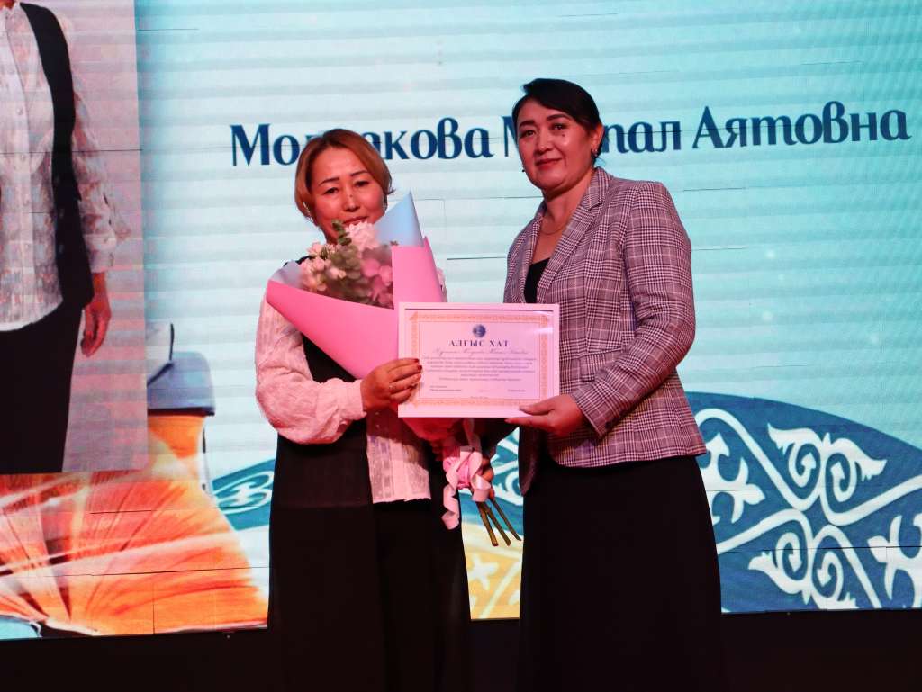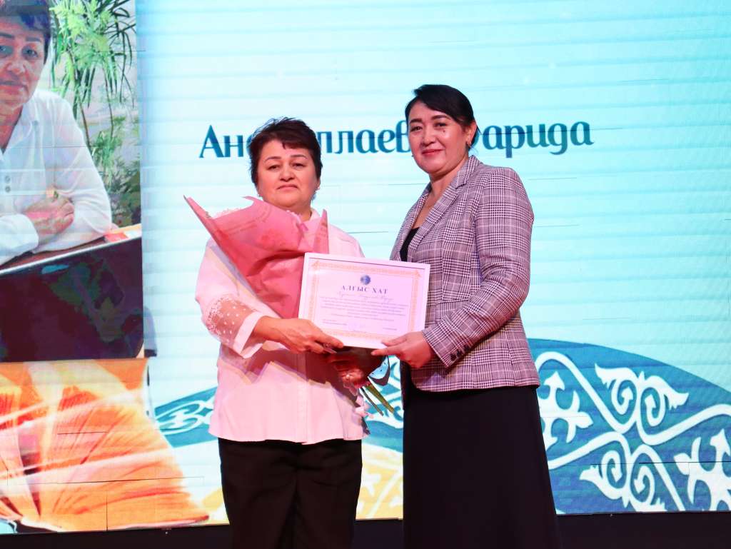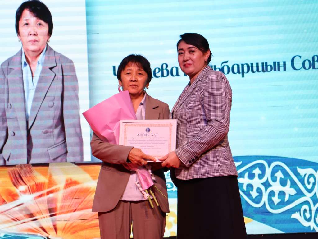 Өзінің құрметін көрсетіп болған соң Астанадан аманат ретінде жіберілген «Ұстазыңды құрметте» жобасы аясында жүргізіліп отырған ардагер ұстаздарға арнайы Қазақстн Республикасы экология және табиғи ресурстар министрлігінің Алғыс хатын табыстады. Министр Ерлан Нысанбаев өзінің алғыс хатында Сізге жас ұрпаққа сапалы білім мен саналы тәрбие берудегі адал еңбегіңіз үшін алғыс білдіремін. Ұстаздық жолындағы табандылығыңыз бен жауапкершілігіңіз өскелең ұрпақтың жарқын болашағына үлес қосып келеді. Балаға білім беріп қана қоймай оны тұлға етіп қалыптастырудағы еңбегіңіз өлшеусіз. Сізге денсаулық пен ұзақ ғұмыр, еңбегіңізге лайықты құрмет пен абырой тілеймін. Ұстаздық жолдағы игілікті істеріңіз әрайым жемісті болсын. Мерекеңіз құтты болсын, – деген ізгі ниетін жеткізіпті. Алғыс хаты мен арнайы сыйлыққа алдыңғы қатарда отырған ардагерлер ие болды. Әдемі музыкалық сәлемнен соң сөзге Ыбырай Алтынсарин атындағы төсбелгісінің иегері Рабилям Хизбакиева шықты. Өзінің ұстаздық жолындағы табыстарымен бөлісіп, әріптестерінің бүгінгі жеңістеріне құтты болсын айтып, жиналған ұстаздар қауымына жүрегінен шыққан жалынды сөздерін арнады.