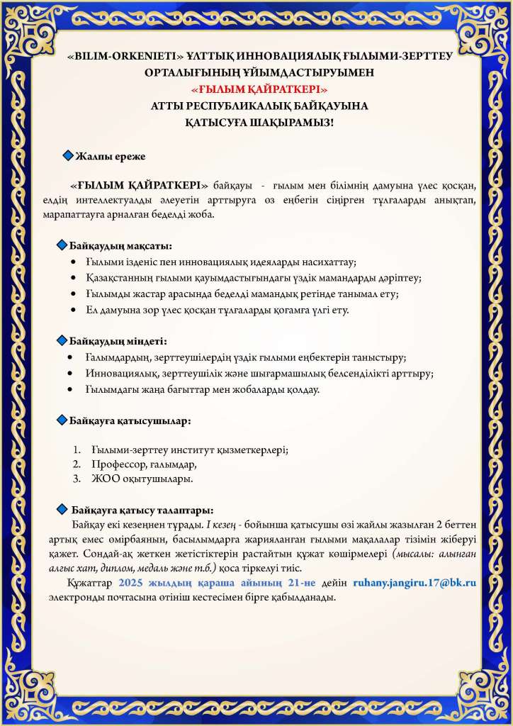 «ҒЫЛЫМ ҚАЙРАТКЕРІ» РЕСПУБЛИКАЛЫҚ БАЙҚАУЫ