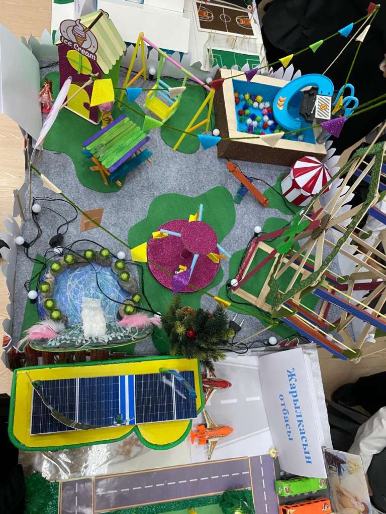 Шындығында келешек иелерінің армандары мен мақсаттары өте биік екен. Бастауыш сыныптары мен мектепалды даярлық тобы балаларының қолынан шыққан дүниелер таңдай қағатындай-ақ. Өз дүниелерін қорғаған сәттегі оқушылардың шабыттары тіпті бөлек. Асықпай, саспай ауданның болашағынан көргілері келетін нәрселерін еш қысылмай түсіндіріп жатыр. Ата-аналары да қосымша айтарларын қосып, балаларына демеу болғандығын айту орынды болар.