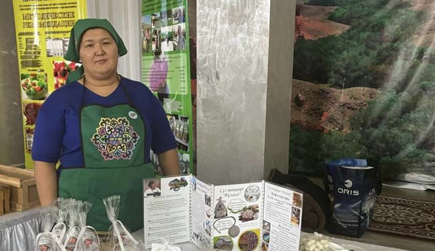 Многодетная мать из села Таскарасу, обладательница подвески «Алтын алқа» Кенжегул Султанкулова, благодаря гранту «Бастау Бизнес» масштабировала свое производство молочной продукции, добавив в традиционный курт яркие креативные нотки.