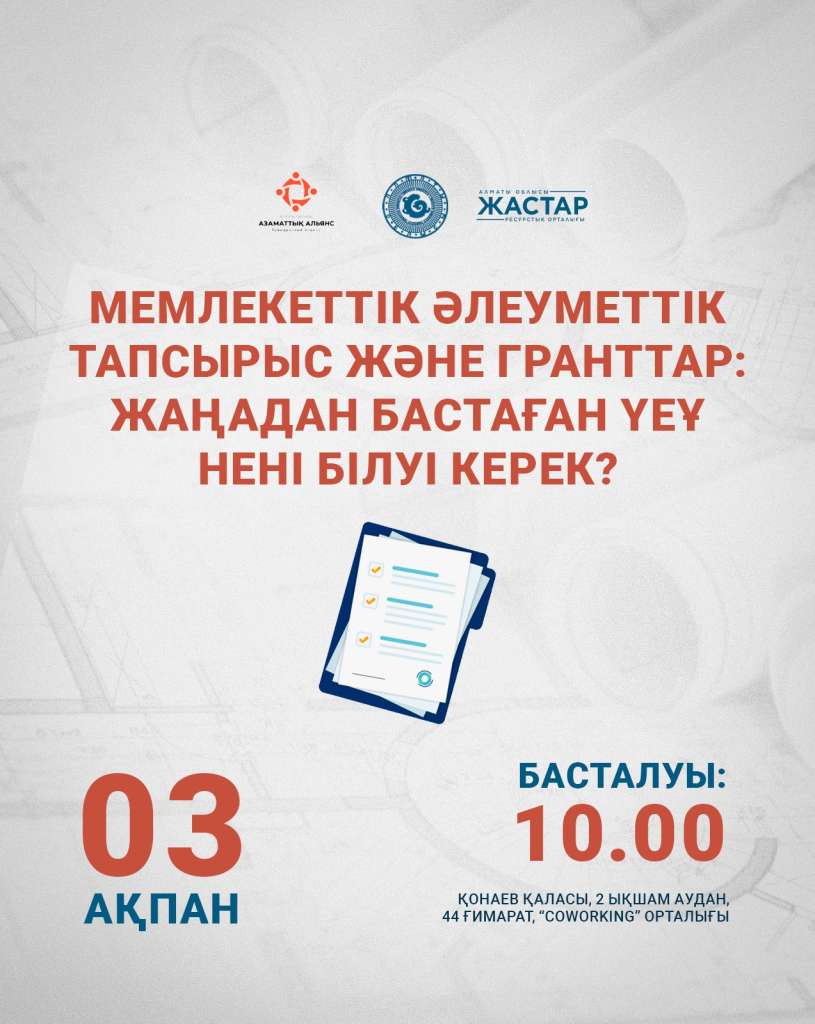 «Мемлекеттік әлеуметтік тапсырыс және гранттар: жаңадан бастаған ҮЕҰ нені білуі керек?