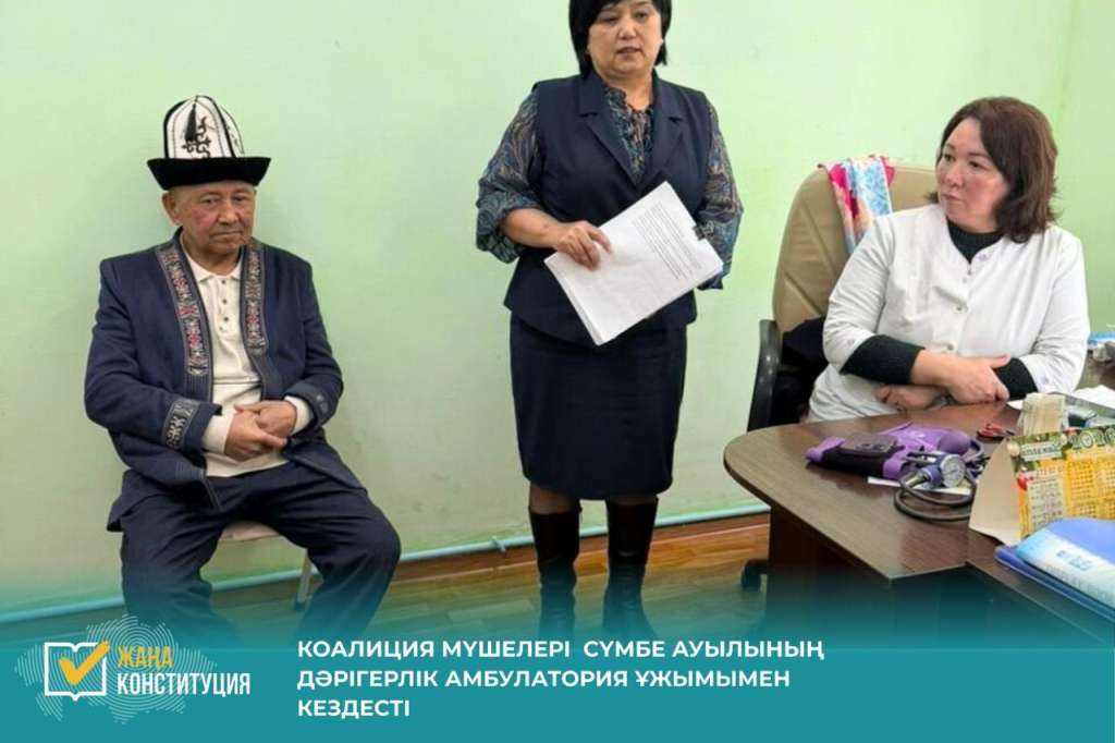 «Әділетті және Прогрессивті Қазақстанның Халықтық Конституциясы үшін!» жалпыұлттық коалициясының мүшелері Сүмбе ауылындағы дәрігерлік амбулаторияның қызметкерлерімен кездесу өткізді.
