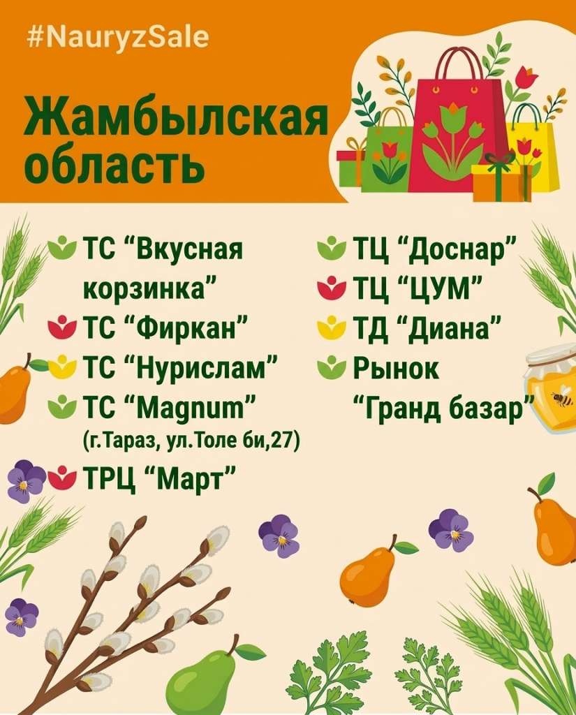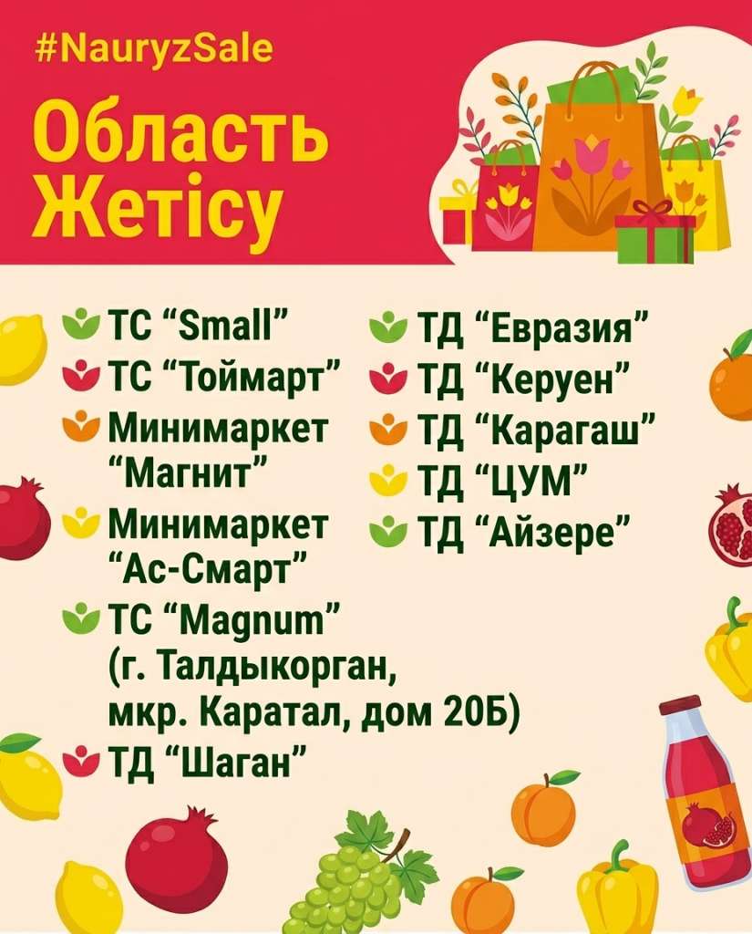 Ескерту: республикалық акцияға бастаманы қолдап, әлеуметтік жауапкершілік танытқан сауда субъектілері қатысады. Қазақстан Республикасының өңірлері бойынша акцияға қатысушылардың тізімі қоса беріледі.