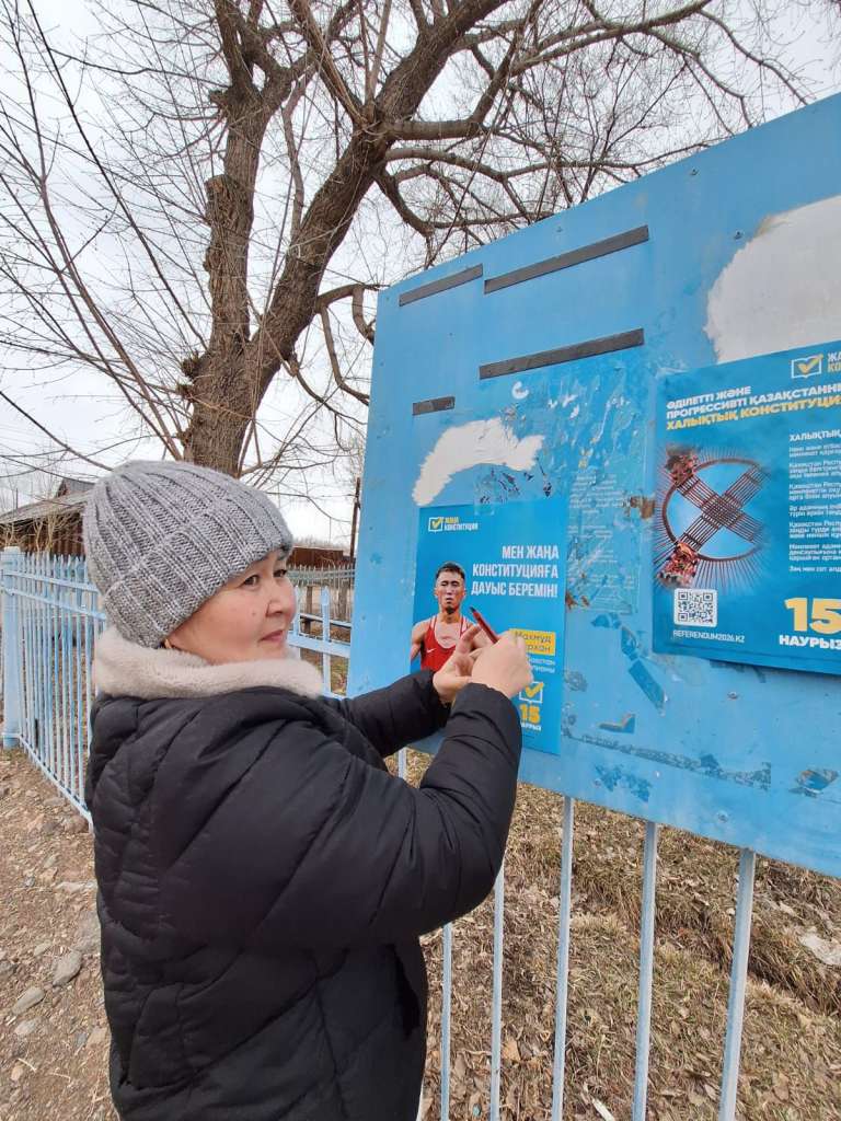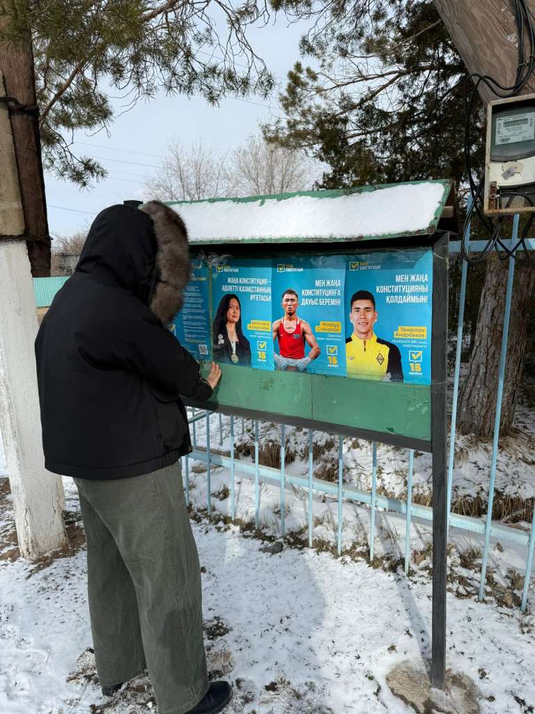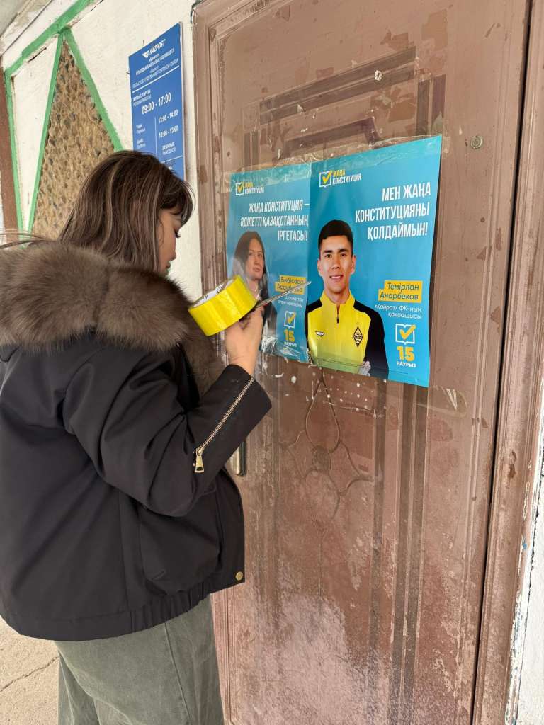 Арнайы құрылған топтар «Есіктен есікке» форматында тұрғындармен кездесіп, референдумның маңызы мен дауыс беру тәртібін түсіндіруде.